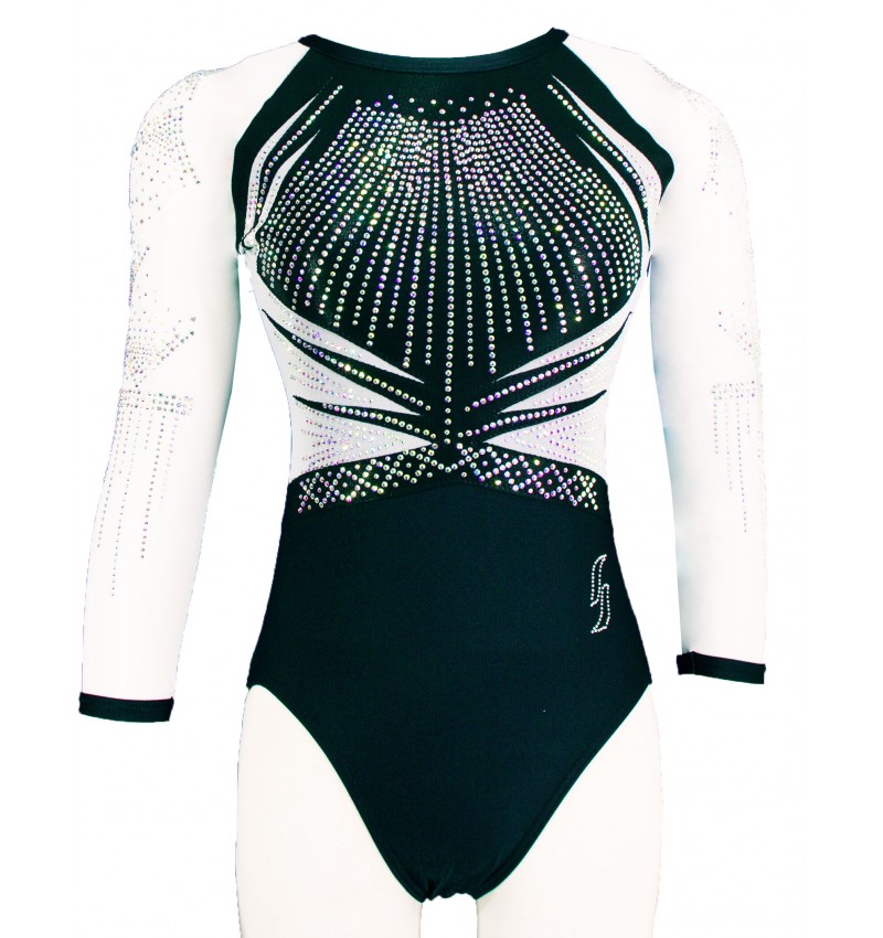Le justaucorps Toscane-03 séduit par son contraste noir et blanc élégant, sublimé par des strass scintillants. Avec ses manches longues en tulle et son design dynamique, il offre confort, maintien et liberté de mouvement pour l’entraînement comme pour la compétition.