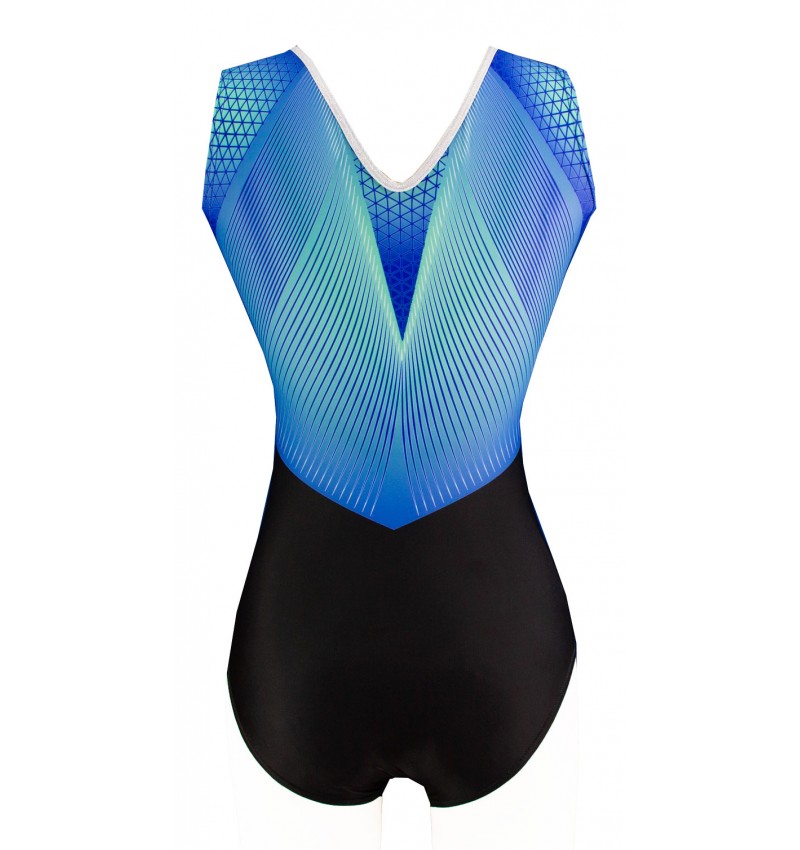 Le justaucorps Vicky-01 de Startner se distingue par sa technique de marquage effet miroir exclusive, offrant un rendu lumineux unique. Sa coupe sans manches et son design bleu moderne assurent confort, liberté de mouvement et élégance, pour l’entraînement comme pour la compétition.