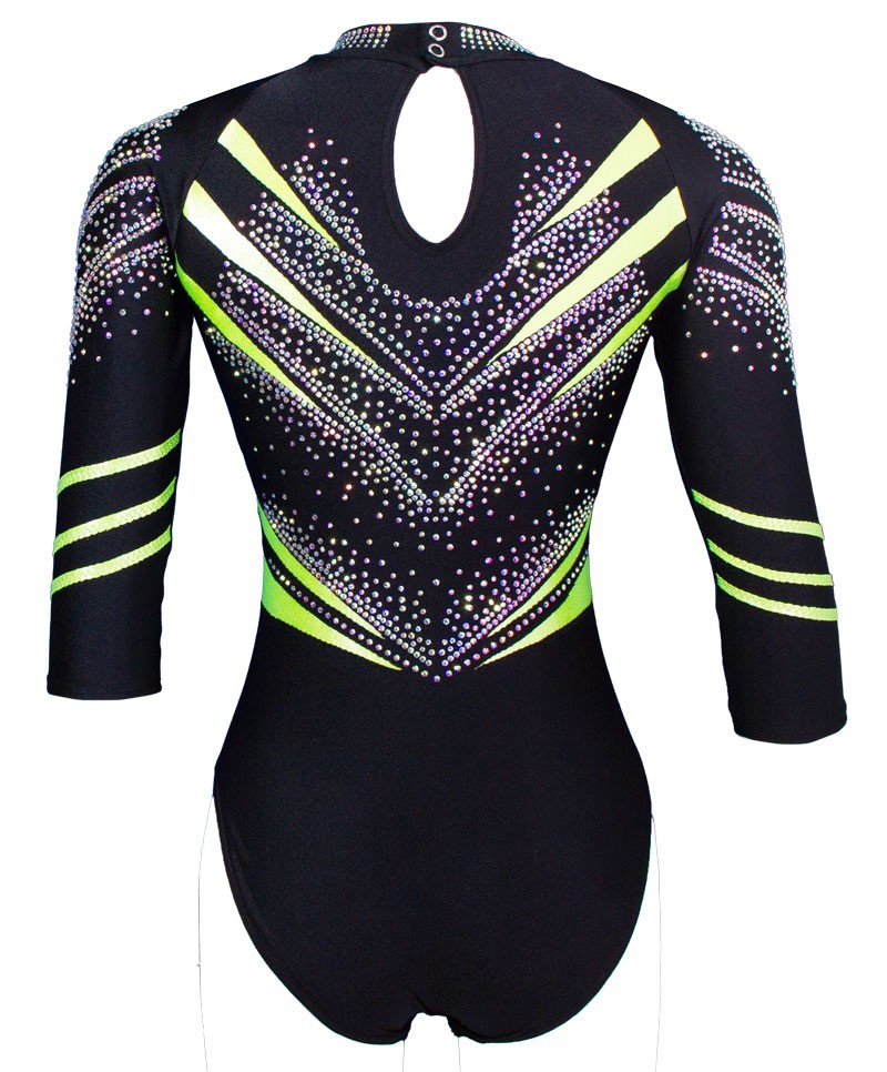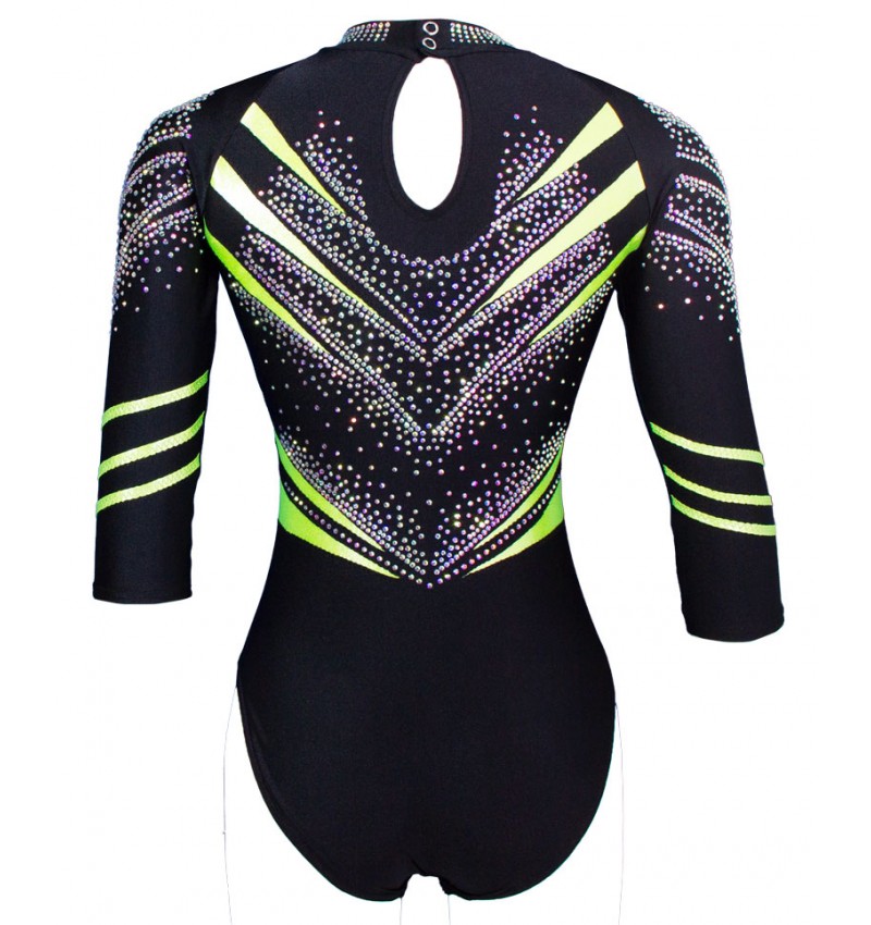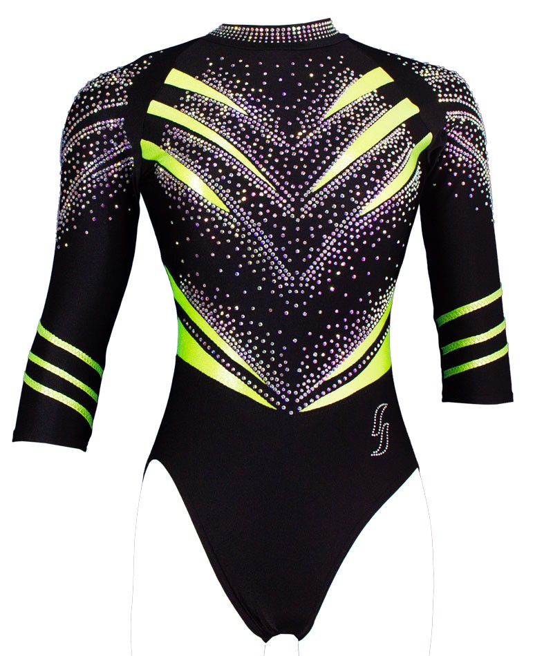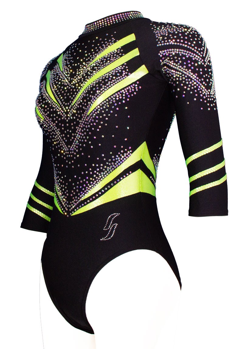 Le Verone-01 joue sur les contrastes avec un fond noir intense et des lignes lumineuses. Les strass structurent le visuel et donnent du rythme à la tenue, idéale pour se démarquer sans compromis sur le confort.